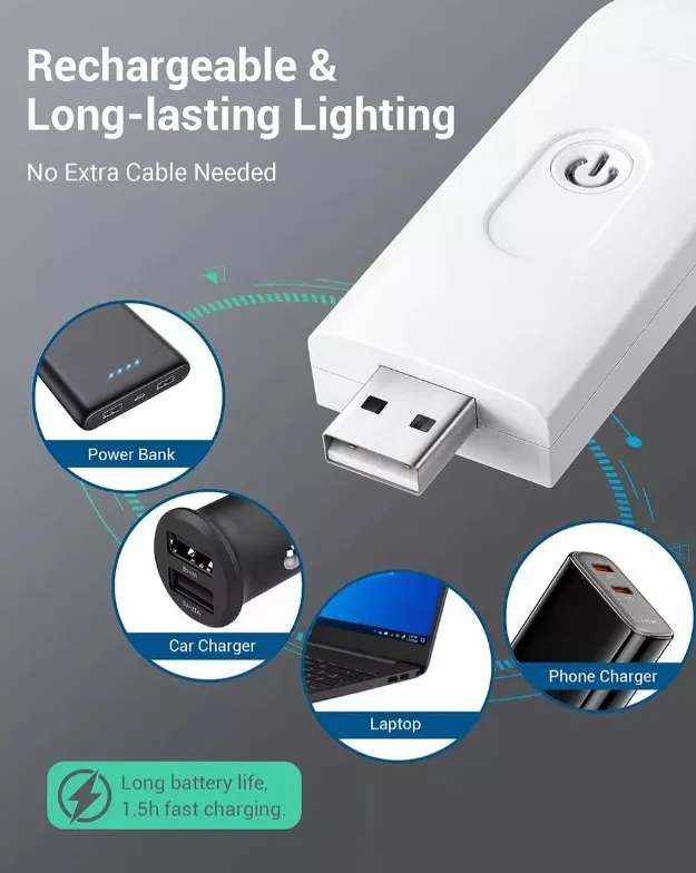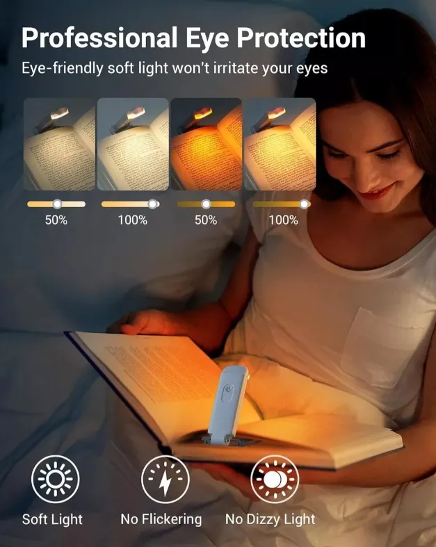 Luz De Libro Recargable Usb Portatil Con Bloqueo De Luz Azul Blanco